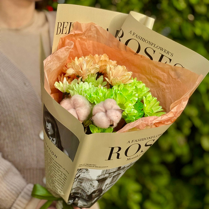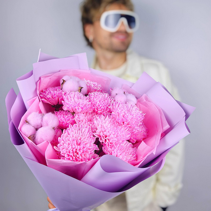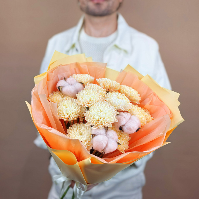 Нежный теплый букет с Хризантемой и Хлопком