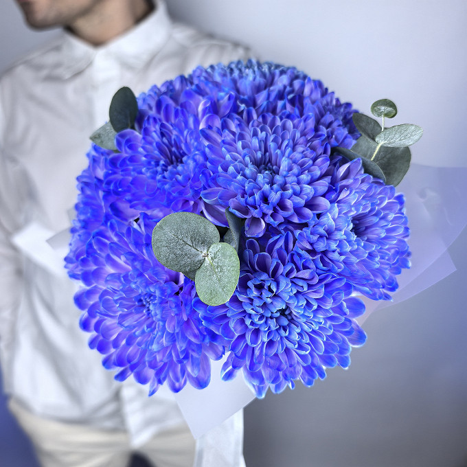 / Композиция-комплимент в стаканчике с синей Хризантемой из 3х шт